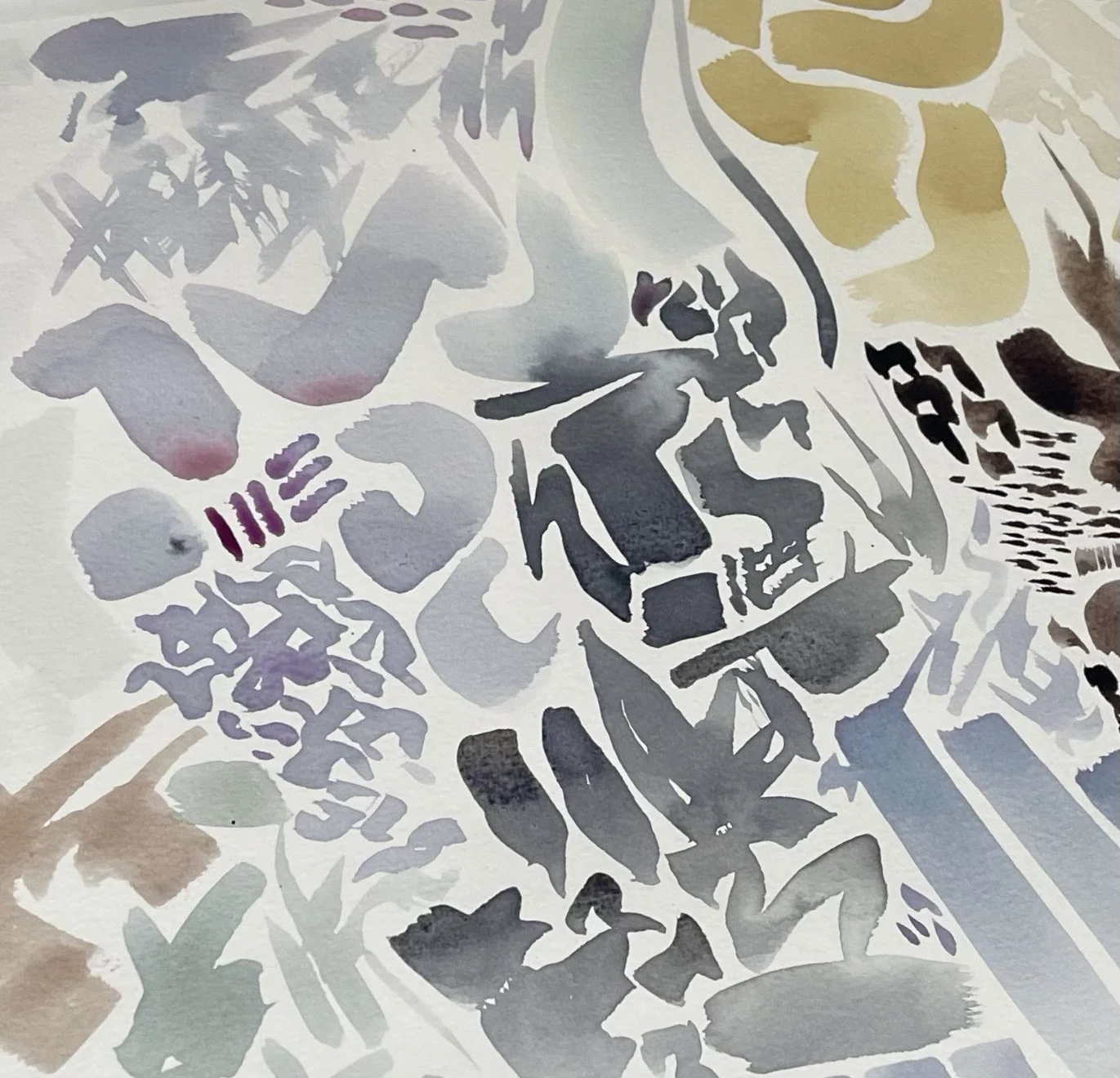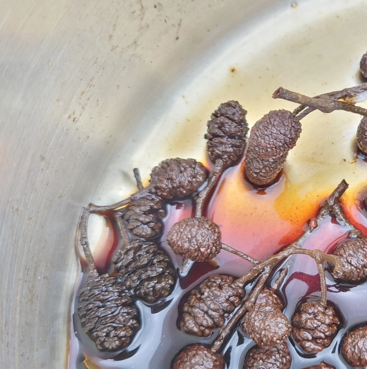 Working with interdisciplinary artist and researcher Andrew Howe on the production of plant-based inks, pigments and paper, I was able to envisage what my practice could look like in terms of material use and sustainability. It opened up areas of research and allowed me to consider long-term production, working cyclically with the seasons. I got the chance to experiment with various mordants (citric acid, alum, soda ash, ferrous sulphate and copper oxide) as well as sharing in discussions regarding particular plants. During my time at Bodenham, I gathered small samples of plant matter for the production of inks and pigments. Late summer/autumn provided berries: sloes (blackthorn), haws (hawthorn), guelder rose and dogwood. I worked with leaves and twigs from the cider orchards and collected alder cones (abundant) and oak galls (limited). Spring was excellent for young willow and spindle shoots, fired up for charcoal. New nettle growth made excellent paper pulp. Pigments later became watercolour and oil paint. As my collection grew, I began to consider how I might use them to represent certain poems/words, and which techniques might be suitable. I was also able to share these mediums with others, taking them to community sessions and projects; opening up discussions about the materials and bringing another layer of connection to our local landscape.